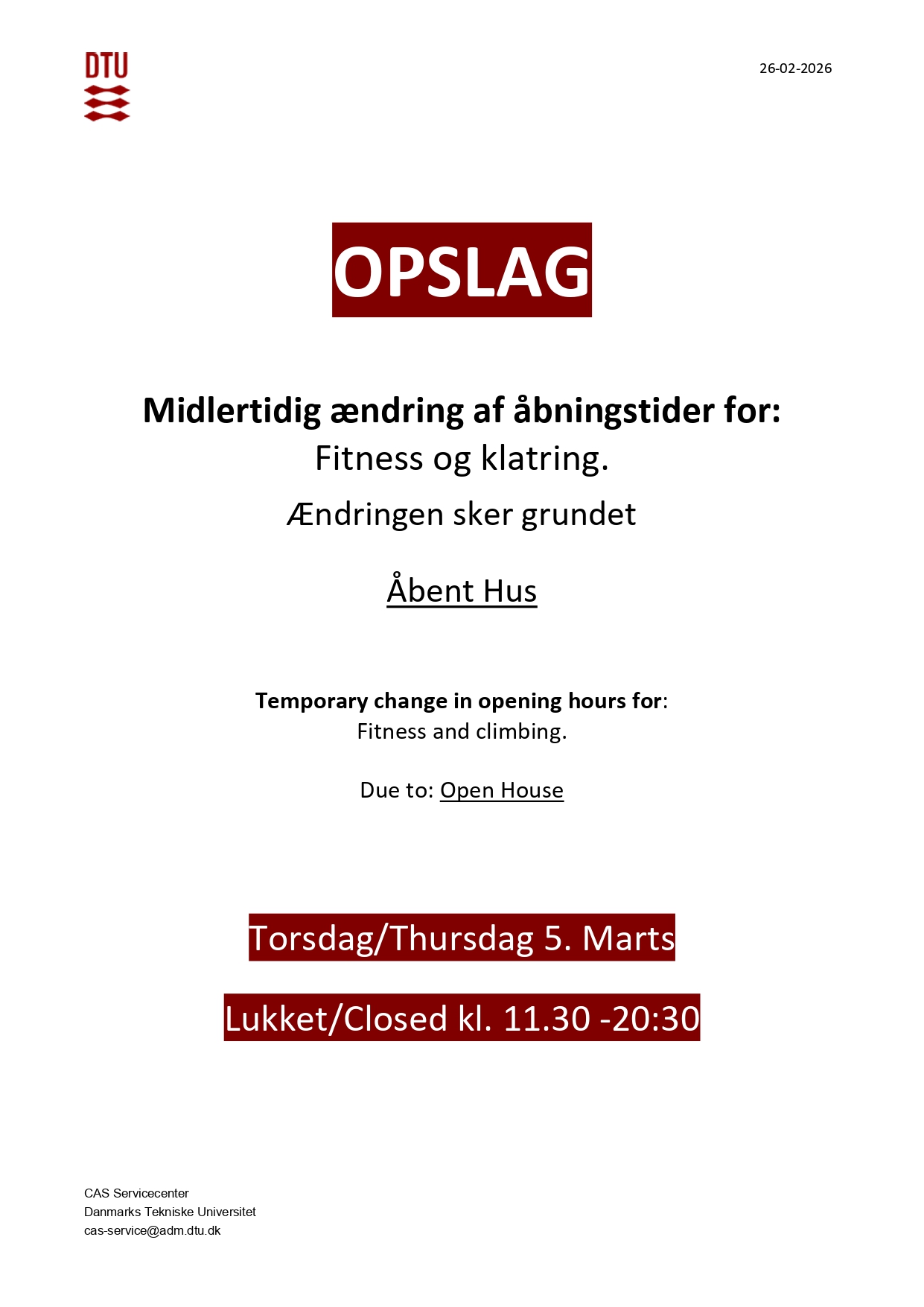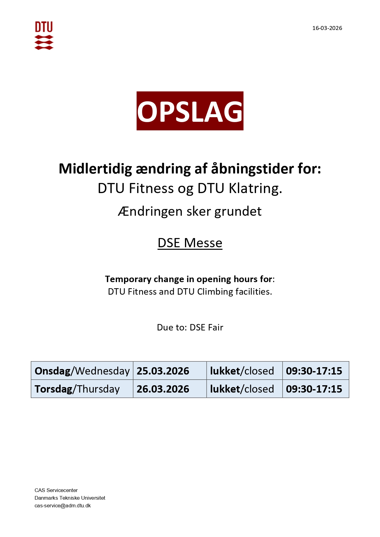 Oversigt over lukninger // Overview of closures